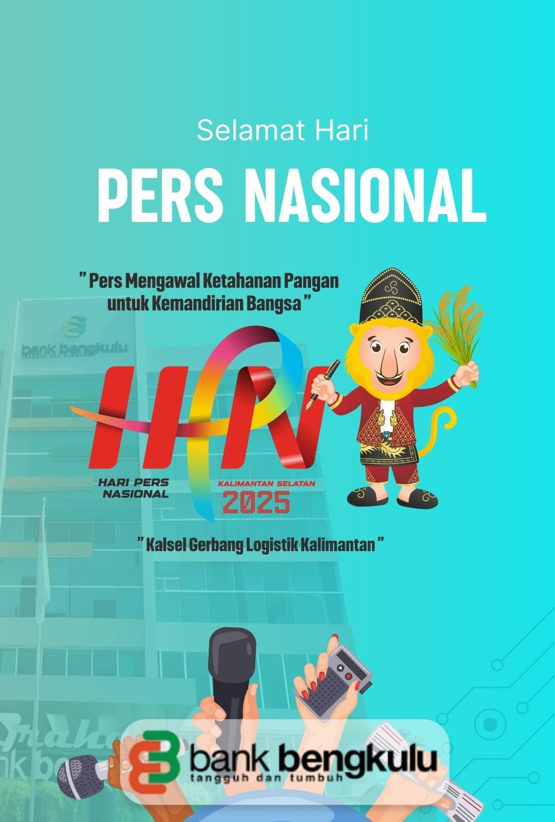 CacamNian, id – Segenap Pimpinan dan Karyawan/i Bank Bengkulu mengucapkan selamat Hari Pers Nasional (HPN) 2025 “Pers Mengawal Ketahanan Pangan untuk Kemandirian Bangsa”.